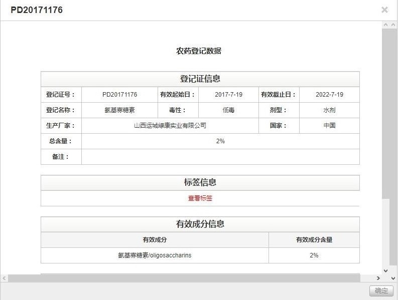 ①水劑外觀為均相透明液體,有微量懸浮物。氨基寡糖素是利用微生物發(fā)酵技術(shù)從富含甲殼素的蟹、蝦等產(chǎn)品的廢棄物中分離得到的,是一種具有抗病作用的******劑,******譜廣,對多種******、******、病毒引起的病害均有效。
